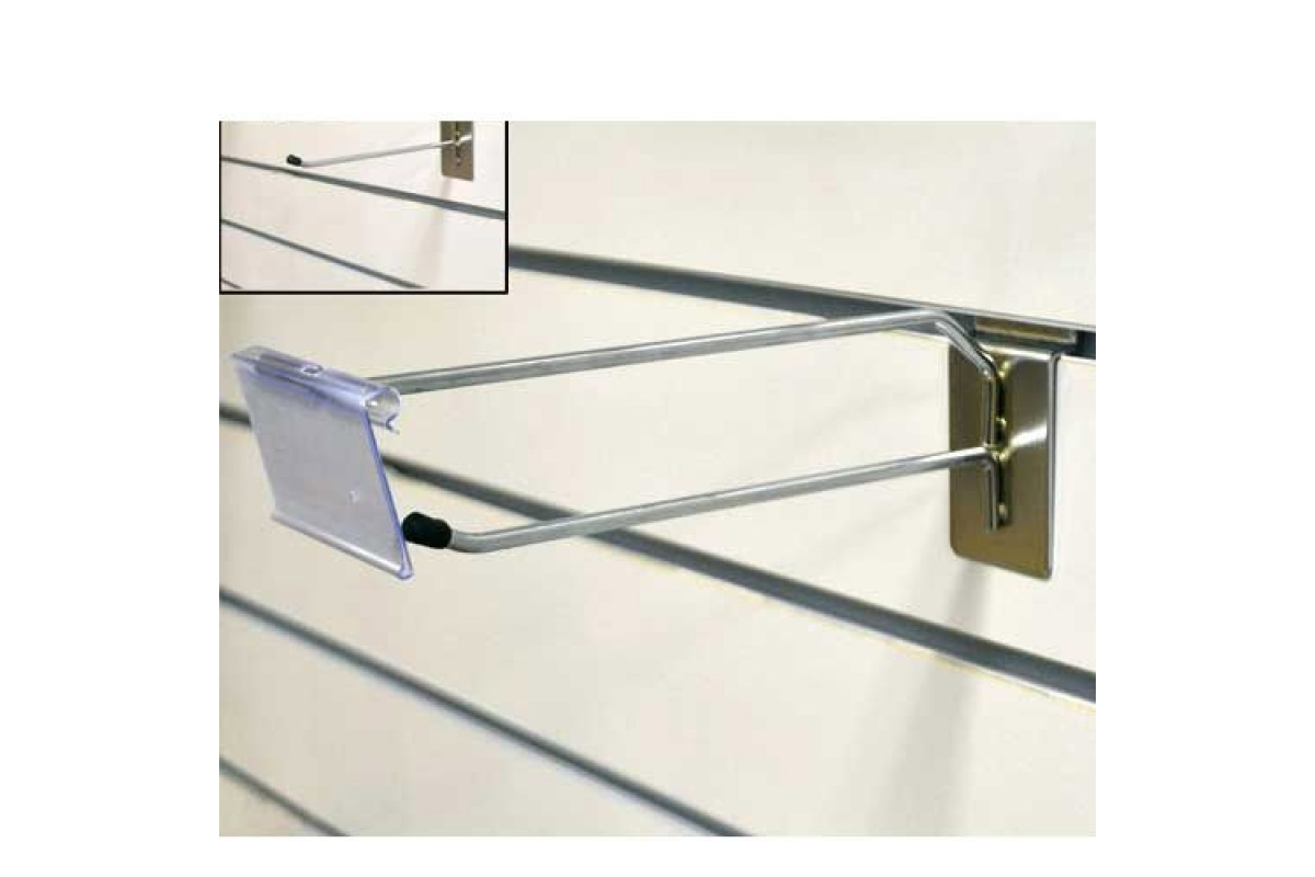 хром L=300 мм, d прутка = 5мм Размер ценникодержателя = 60*40h мм. Материал – пластик.