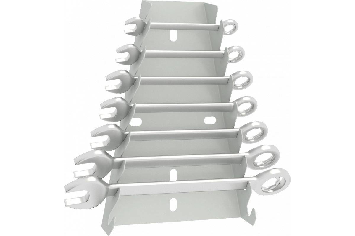 Держатель для ключей DK-8 может быть установлен в качестве дополнения на инструментальную панель верстаков серии ВС, ВТ, ВД, ВДТ, а так же на перфорированный экран стеллажей серии СК, МКФ, СГР. Изготавливается из холоднокатаной стали. Имеет 8 уровней с пазами, предназначенных для размещения гаечных ключей разного размера. Для крепления к верстаку используются винты М6х10 с гайками(входят в комплект). Покрытие - порошковая полимерная краска.