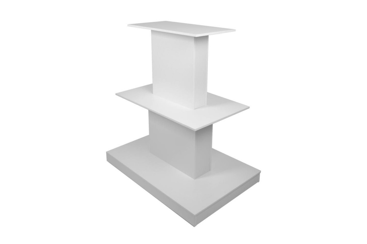 ExTL-80х120-60x100-40х80-130H Экспостенд (с тремя уровнями),Н1300,ЛДСП 16мм,белый шагрень,с колёсами