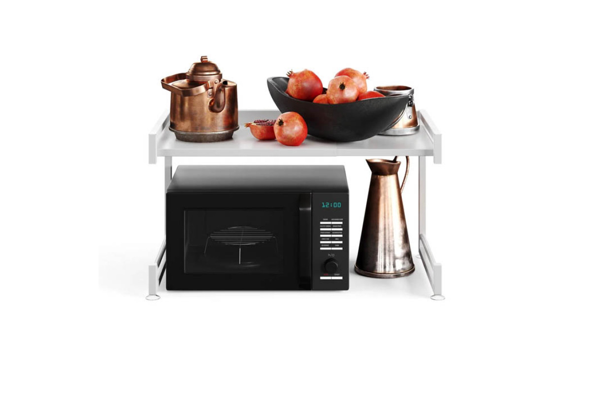 Этот стеллаж будет идеальным вариантом для размещения его над микроволновкой, чтобы решить проблему захламления поверхности микроволновки. На нем можно удобно разместить специи, чашки, тарелки и другие кухонные принадлежности, которые часто используются в быту. Также он может служить местом для хранения книг, журналов или декоративных элементов в гостиной или спальне.