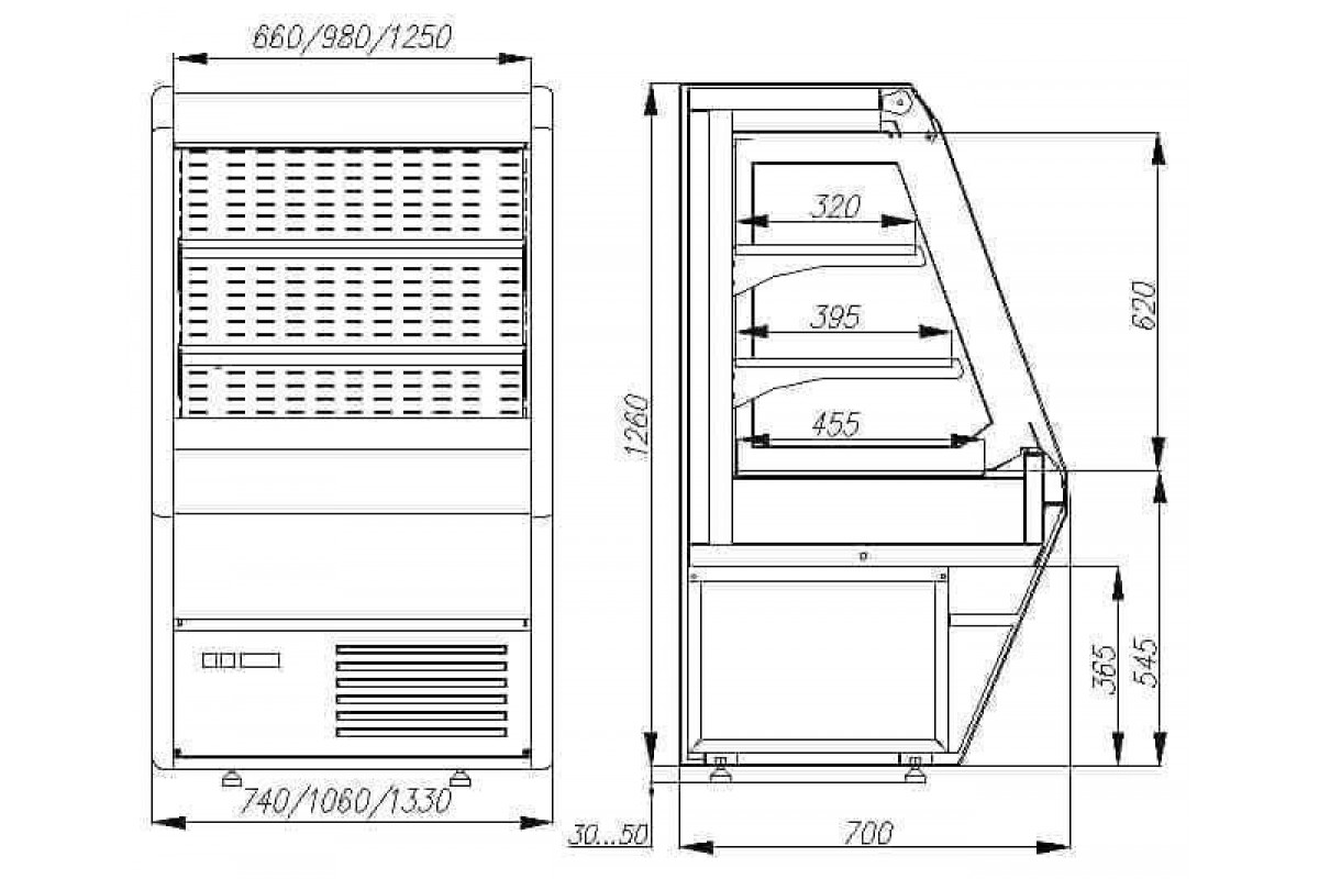 Холодильная горка гастрономическая Carboma F13-07 VM 0,7-2 0020 стеклопакет (Carboma 1260/700 ВХСп-0,7, индивидуальное исполнение)