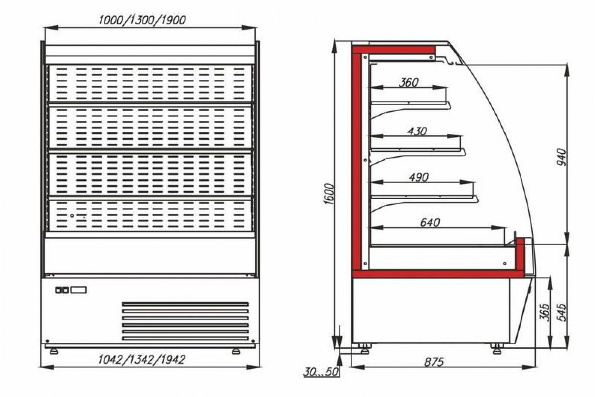 Холодильная горка гастрономическая Carboma F16-08 VM 1,9-2 0020 стеклопакет (Carboma 1600/875 ВХСп-1,9, цвет по схеме, фронт стандартный цвет)