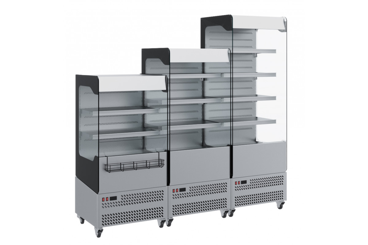 - Открытая выкладка – отсутствует фронтальное остекление, боковины из закаленного стекла со 100% обзором;