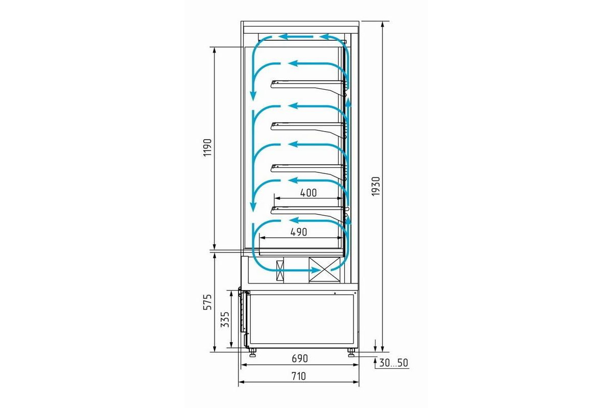 Холодильная горка гастрономическая Carboma FC20-07 VM 2,5-1 Light (фронт X0, 9006-9005 цвет серо-черный)