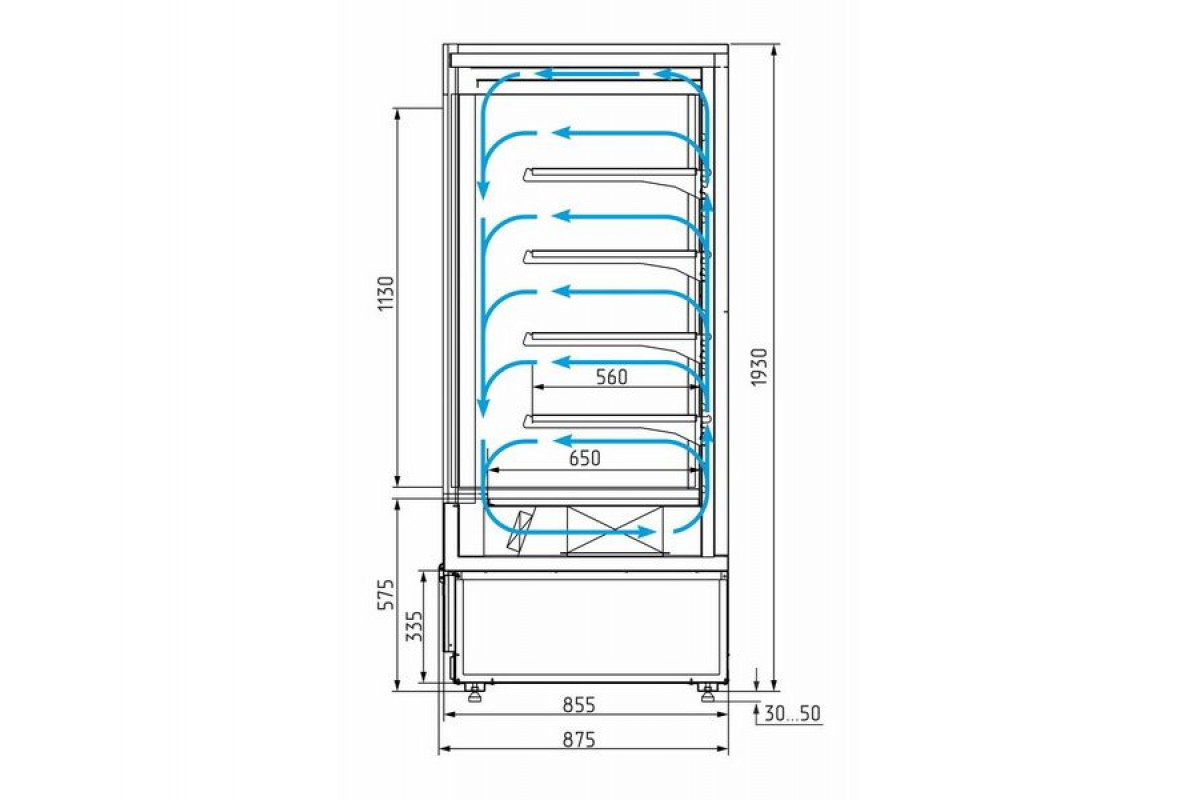 Холодильная горка гастрономическая Carboma FC20-08 VM 2,5-1 Light (фронт X0, 9006-9005 цвет серо-черный)