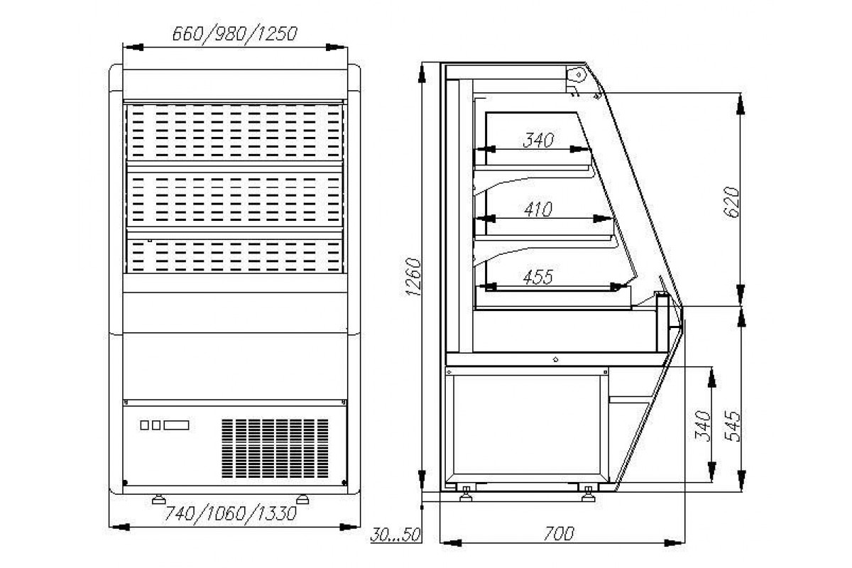 Холодильная горка универсальная Carboma F13-07 VM 1,3-2 (Carboma 1260/700 ВХСп-1,3, цвет по схеме)