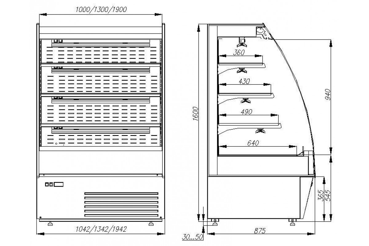 Холодильная горка универсальная Carboma F16-08 VM/SH 1,3-2 0200 тонир.cтеклопакет (Carboma 1600/875 ВХСп/ВТ-1,3) (цвет по схеме)