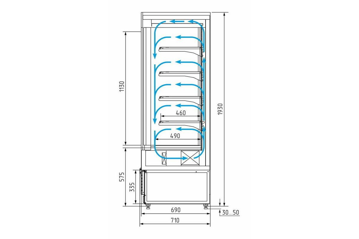 Холодильная горка универсальная Carboma FC20-07 VV 2,5-1 0300 Standart фронт X1 бок металл версия 2.0 (9006-9005)