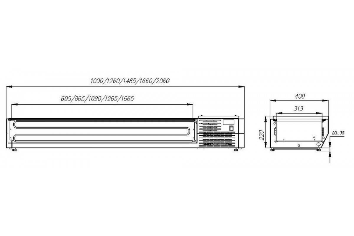Витрина холодильная Сarboma A40 SM 2,1 0430 используется на предприятиях питания для кратковременного хранения и поддержания свежести ингредиентов для пиццы, салатов, также удобна для демонстрации и продажи продуктов в гастрономических ёмкостях. Устанавливается на поверхностях холодильных/нейтральных столов, прилавках, барных стойках, элементах линий раздачи.