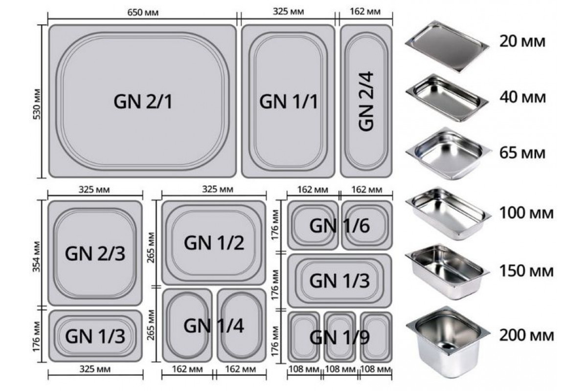 - Глубина гастроёмкостей: не более 150 мм;