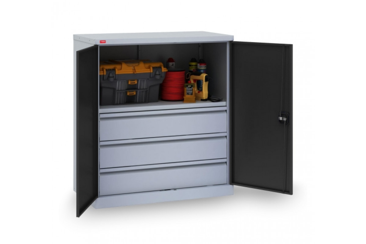 Инструментальный шкаф ИП-1-0.5/5 - вариант возможной комплектации (инструменты на фото в комплектацию не входят). К существующей комплектации можно добавить дополнительные элементы по желанию. Инструментальные шкафы оборудованы замком повышенной сек