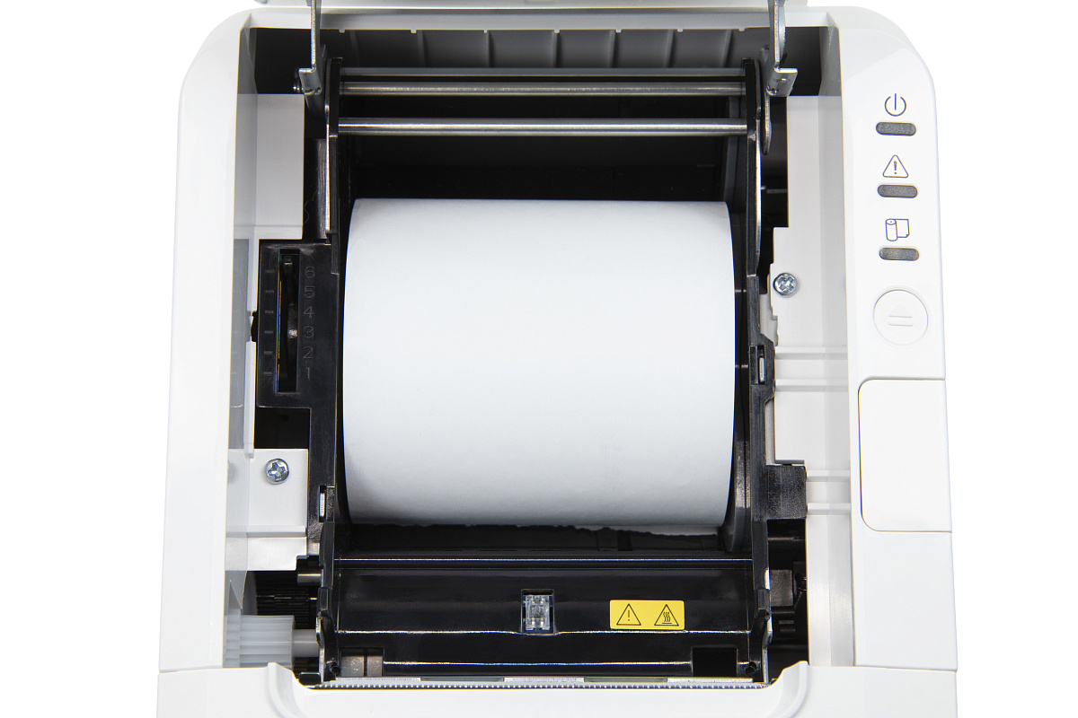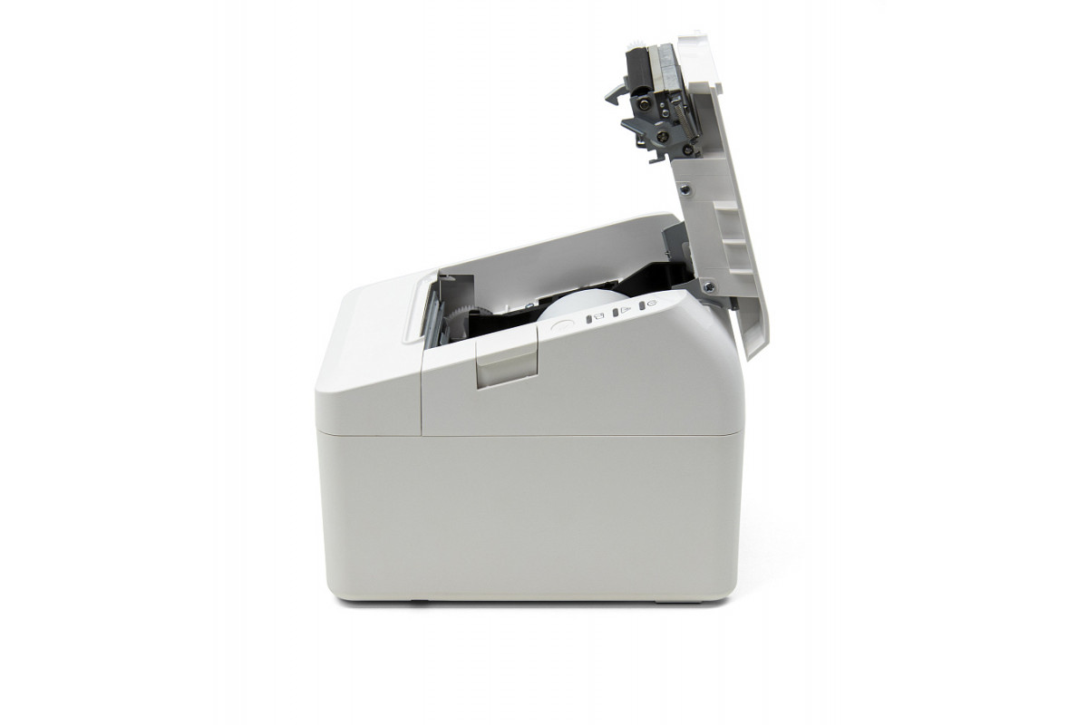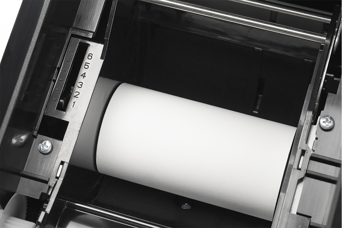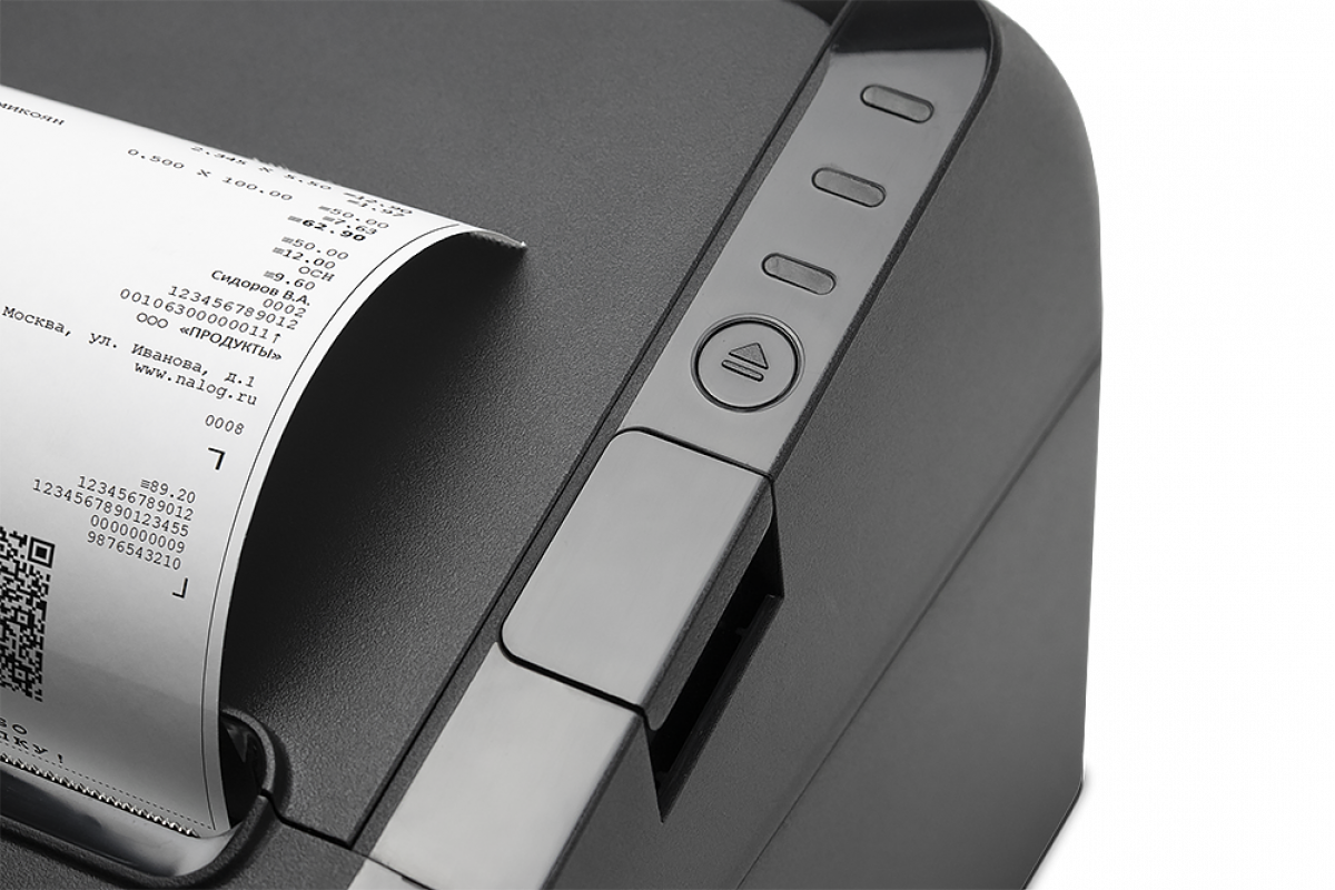 Заменить чековую ленту легко — одно нажатие кнопки и подпружиненная крышка откроется полностью, без риска травмы пальцев кассира. АТОЛ 27Ф удобен для кассовой зоны самообслуживания за счет рулонной подачи чековой ленты.