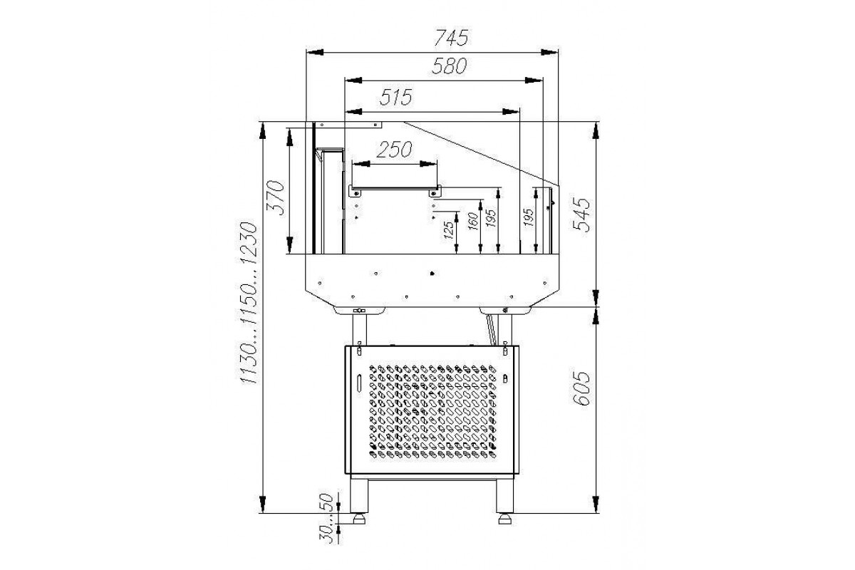 - В стандартную комплектацию входят регулируемые по высоте ножки и боковины из оргстекла;