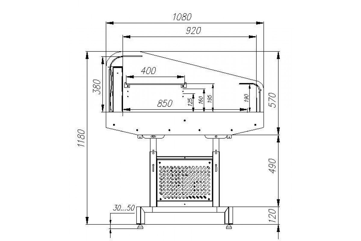 - Одна полка с возможностью установки на разной высоте. Глубина выкладки 400 мм;