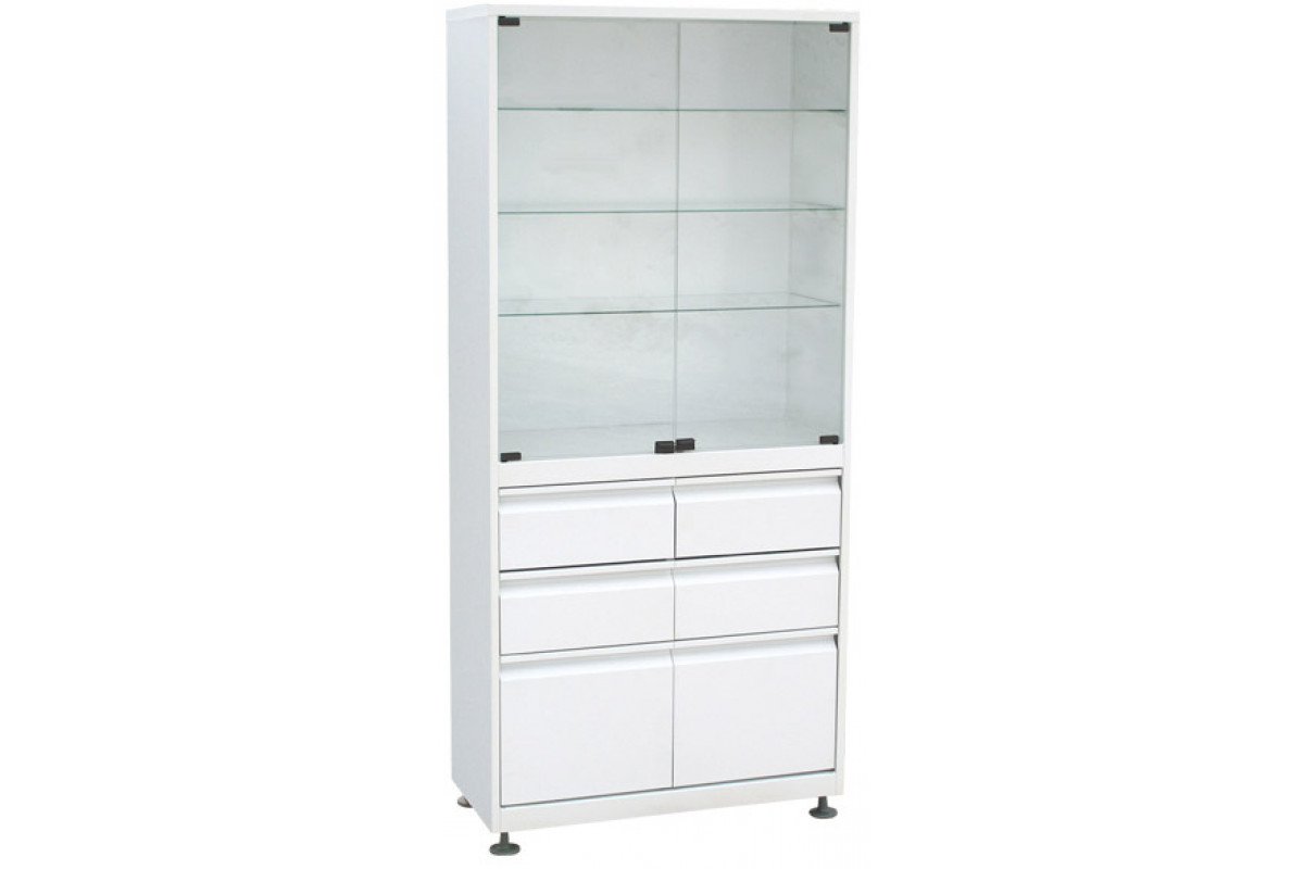 Шкаф 2-ух створчатый стекло/металл ШМС-2-Р-4/2 с регулируемыми опорами с выдвижным ящиком4/2