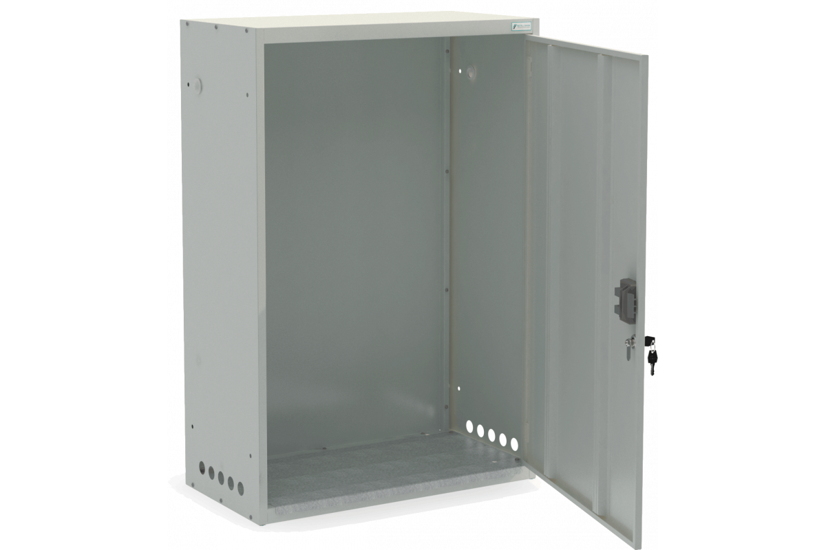 Шкафы серии ШГР изготавливаются из высококачественной конструкционной холоднокатаной стали. Металлический шкаф состоит из сборно-разборного корпуса и одной распашной двери. Корпус состоит из основания, усиленного оцинкованным настилом, крыши, двух боковых стенок и одной задней стенки. Сборка корпуса осуществляется на винтах и саморезах. Дополнительную жесткость основанию придает приварное ребро жесткости.Дверь шкафа имеет коробчатую конструкцию и так же усилена приварным, продольным ребром жесткости (одним или двумя в зависимости от модели шкафа). Ребро жесткости представляют собой сложно-катанный профиль, шириной 90 мм, высотой 15 мм, длина ребра жесткости зависит от модели шкафа.Каждая боковая стенка шкафа имеет одно специальное отверстие для газовой магистрали (шланга), диаметром 31.5 мм, расположенные в верхней части боковой стенке шкафа и пять отверстий для вентиляции, диаметром 31.5 мм, расположенные в нижней части боковой стенки. Нижние, вентиляционные отверстия нужны для предотвращения скоплений газа в случае утечки.В модели ШГР 50-2 дверь устанавливается на карточные петли, обеспечивающие открытие двери на 180°. Долговечность крепления дверей, 40000 циклов открываний, в соответствии с требованием ГОСТ 16371-93.Каждый шкаф серии ШГР оснащен одним почтовым замком повышенной секретности (не менее 2000 комбинаций) и одной пластиковой евро-ручкой для пожарного шкафа (замок для пожарного шкафа). Почтовые замки неподвижно и прочно фиксируются на дверях, в соответствии с требованием ГОСТ 16371-93, и обеспечивают легкое отпирание и запирание. При необходимости, металлический шкаф ШГР комплектуется петлей под навесной замок.Шкафы серии ШГР имеют атмосферостойкое полимерное покрытие, полученное при использовании термоотверждаемых порошковых красок на полиэфирной основе. Фактура покрытия мелкая шагрень. Цвет светло-серый RAL 7035. Полимерное покрытие устойчиво к перепадам температур и влаги. Допускается эксплуатация щитов в температурных режимах окружающего воздуха от «+40»°С до «- 60»°С, при влажности до 85%.Шкафы серии ШГР выпускаются с полным комплектом фурнитуры, необходимой для хранения баллонов. Крепежные элементы крепятся к задней стенке шкафа, в уже имеющиеся отверстия Ф 6,5 мм, с помощью болтов М 6х16 и гайки М 6.В комплект фурнитуры входят самоклеющаяся наклейка «Осторожно Газ», размером 90х100 мм и 2 пластиковые заглушки, диаметром 32 мм.