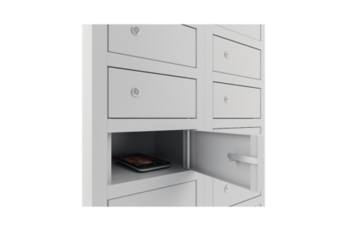 размер отдельной ячейки 97х199х170 мм. (полезная площадь), габариты одной ячейки позволяют свободно уместить до 8 мобильных телефонов,