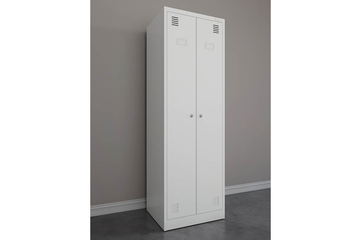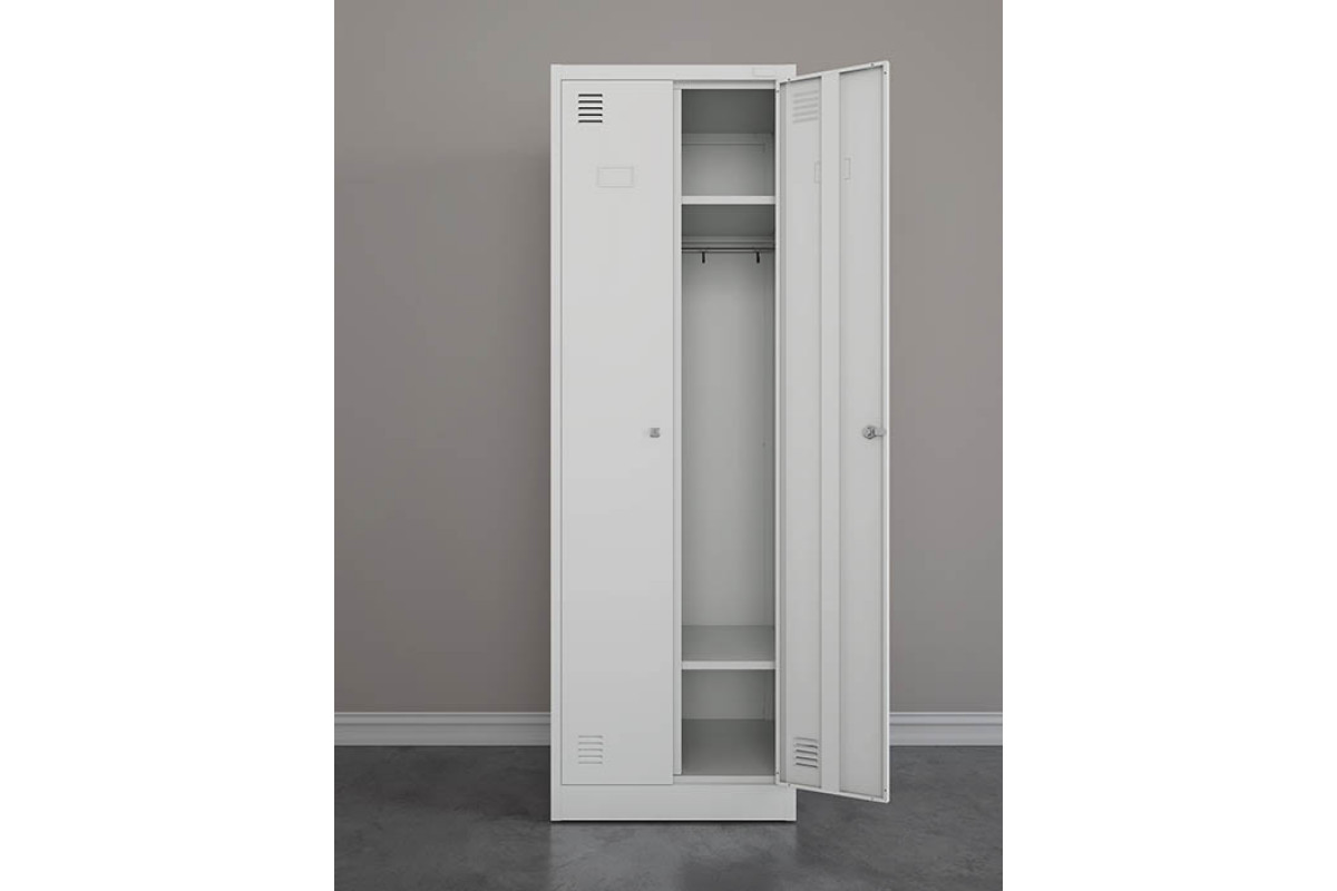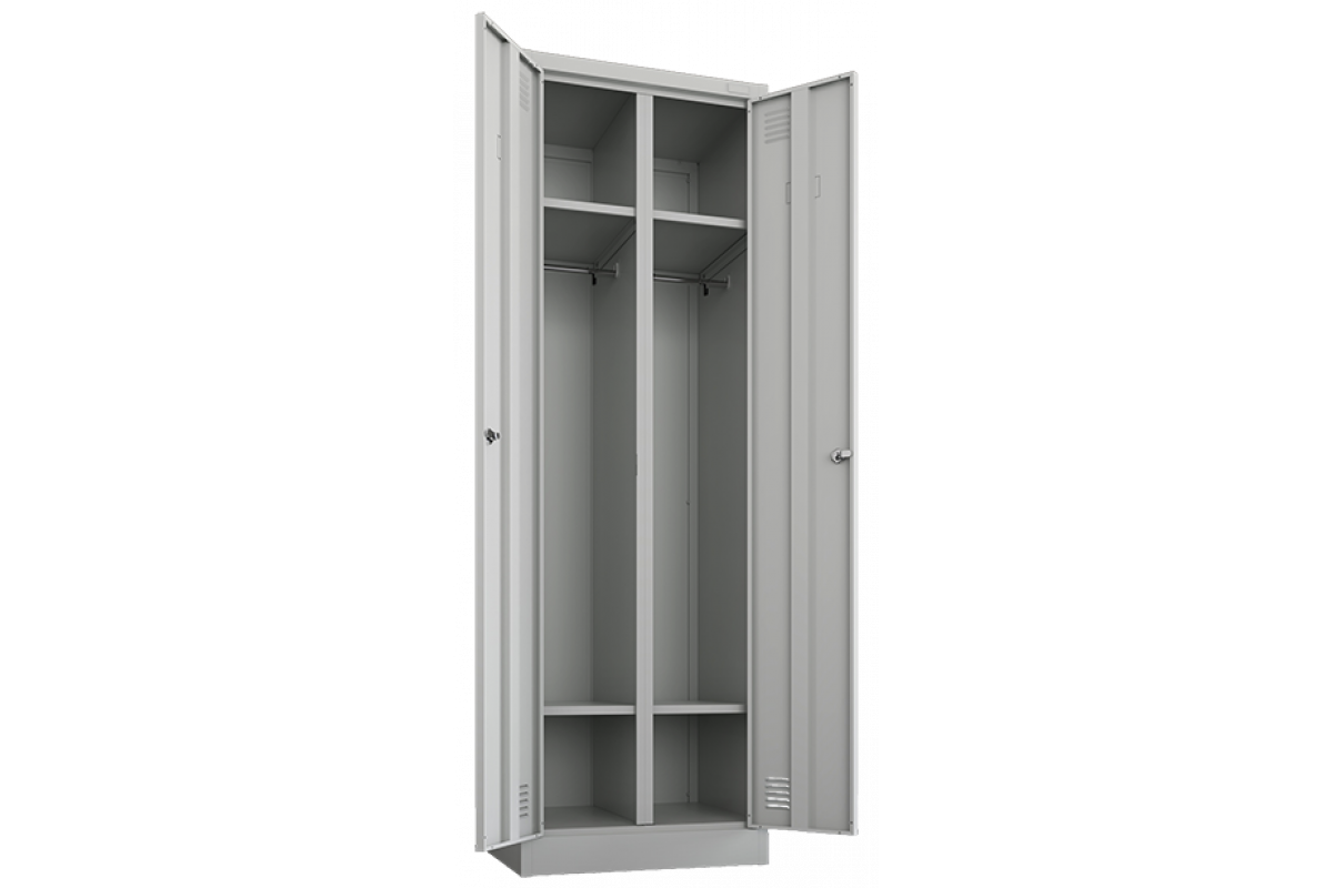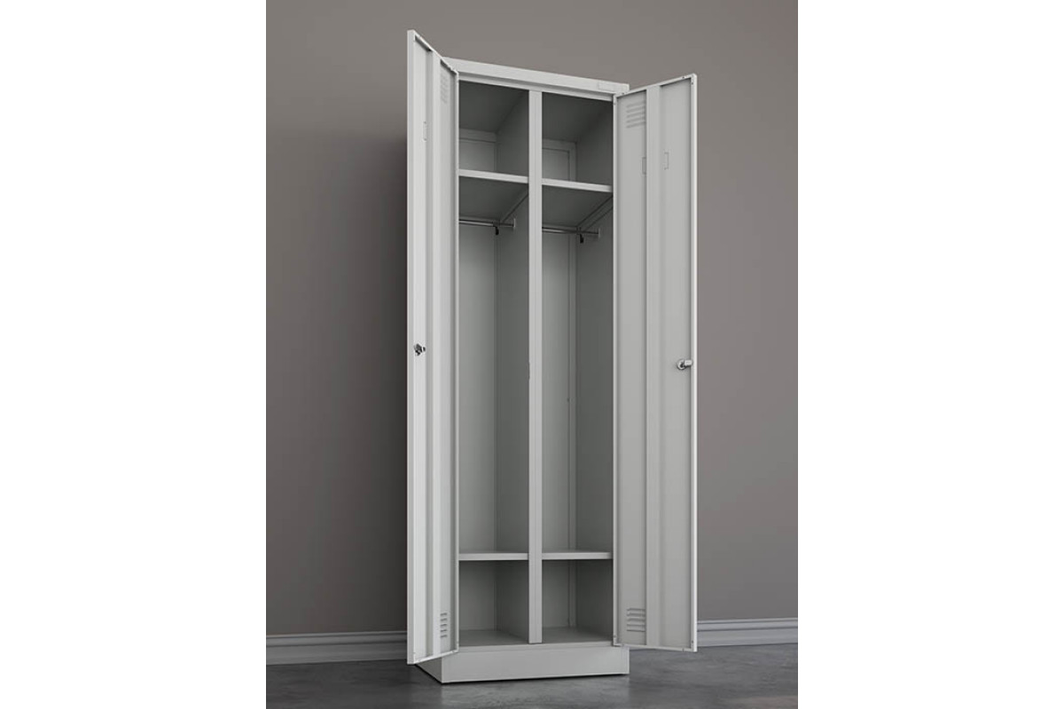 Шкаф для одежды ШРК-Е 22-600 — двухсекционный металлический шкаф с двумя распашными дверями.