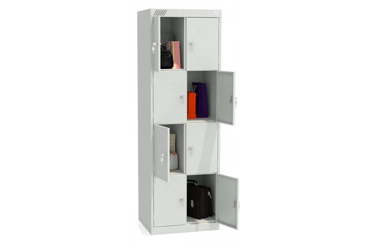 • Шкаф для сумок ШРК-28-600 состоит из двух секций, восьми ячеек.