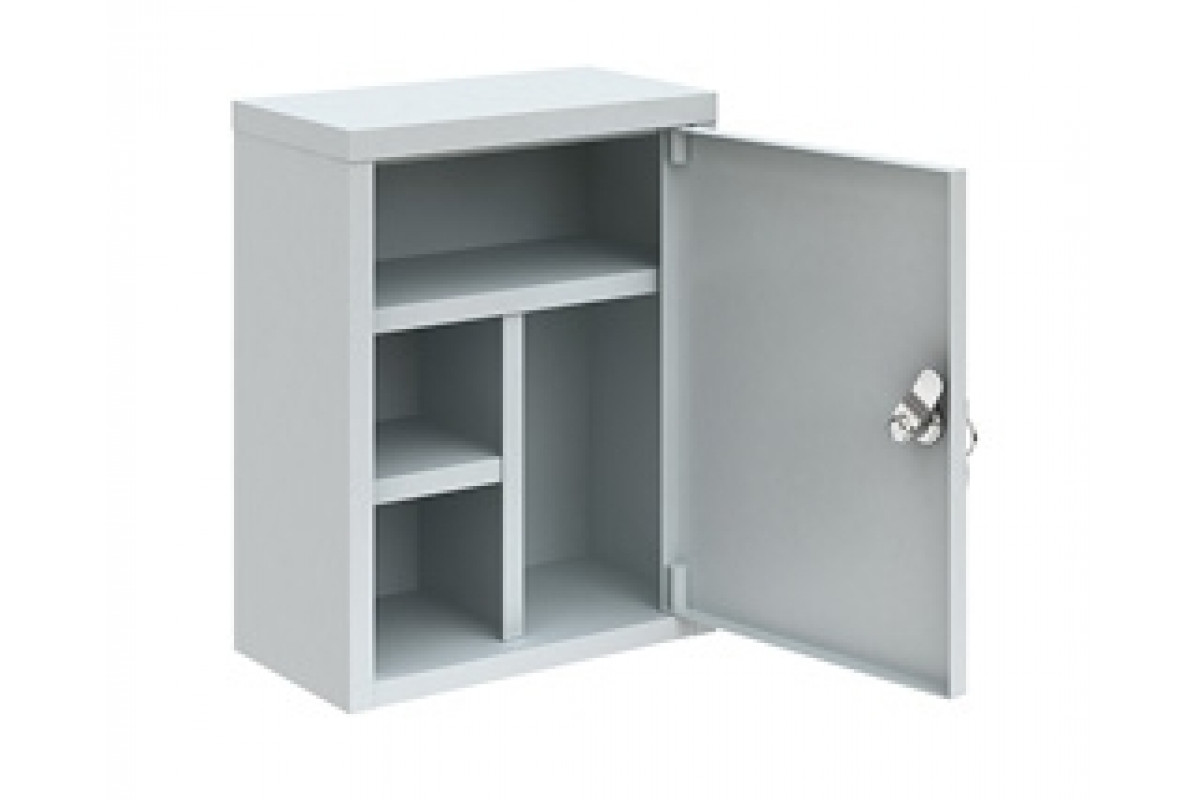 Шкаф медицинский АМ-1 (аптечка) используется для хранения медикаментов в офисах, на производстве, в муниципальных учреждениях. Предусмотрена возможность крепления к стене. Металлическая аптечка медицинская имеет небольшой вес, что обеспечивает надежное