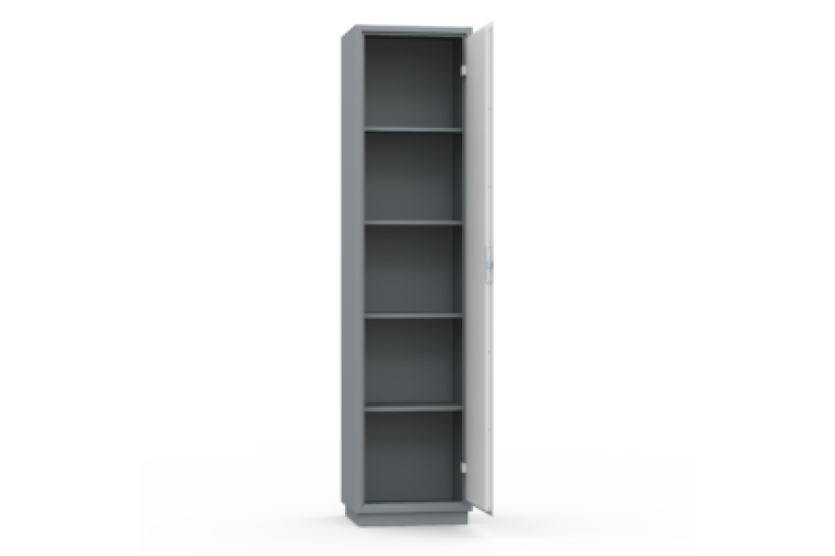 Вся линейка бухгалтерских шкафов окрашена в два цвета: корпус – RAL 7011 (благородный темно-серый), дверь — RAL7035 (светло-серый).