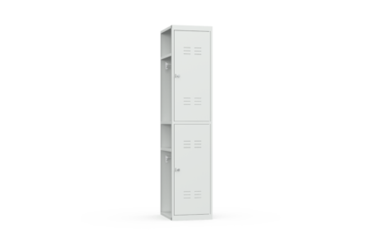 двухсекционный металлический шкаф для одежды имеет две ячейки с индивидуальными замками,