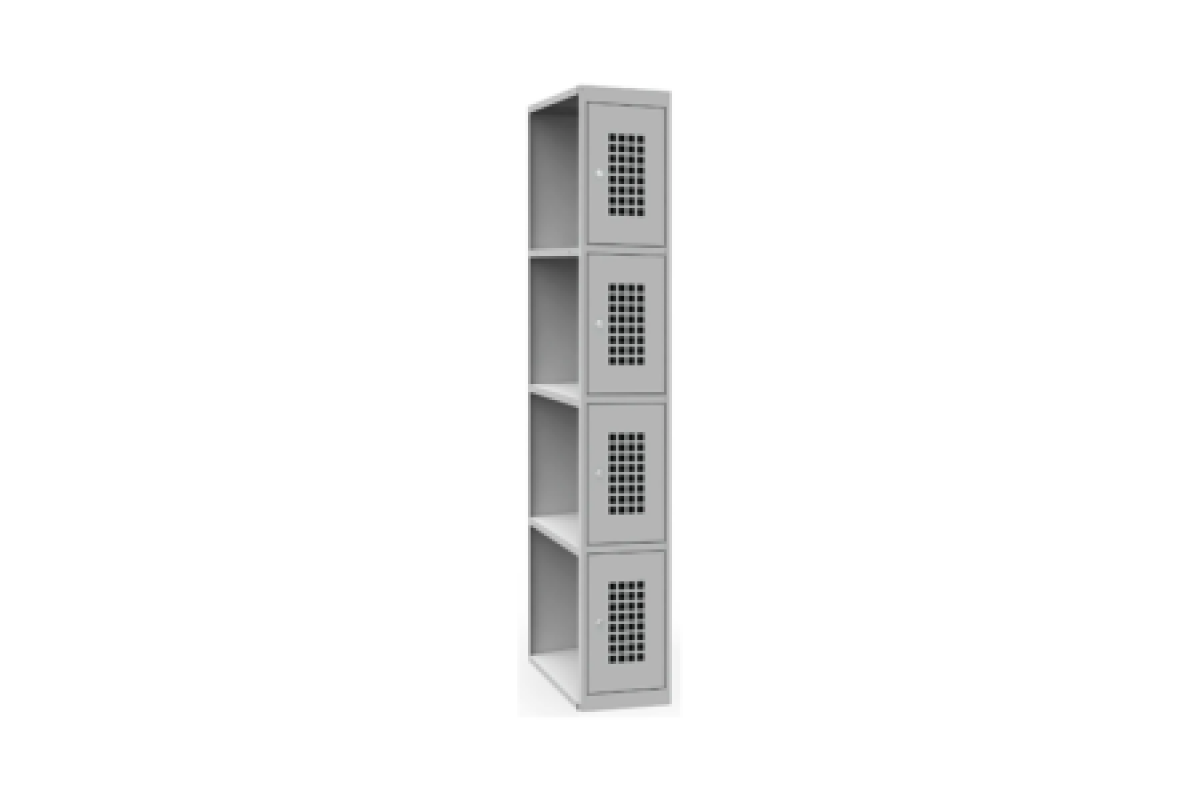 Шкаф имеет 4 ячейки размером 440х300х500 мм каждая. Вместительные габариты ячеек позволяют комфортно размещать в них пакеты и сумки средних размеров.