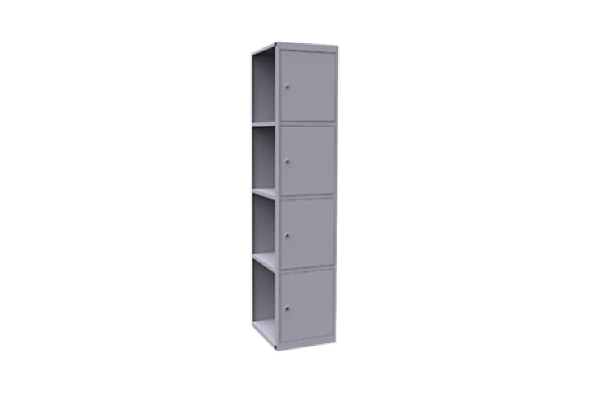 Шкаф имеет 4 ячейки размером 440х400х500 мм каждая. Вместительные габариты ячеек позволяют комфортно размещать в них пакеты и сумки средних размеров.