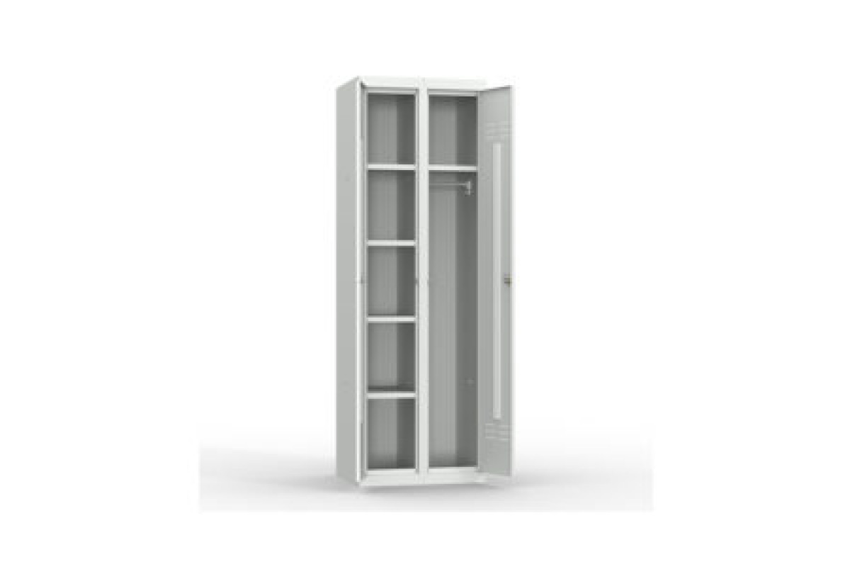 двухсекционный металлический шкаф для одежды отличается наличием двух секций с индивидуальными замками