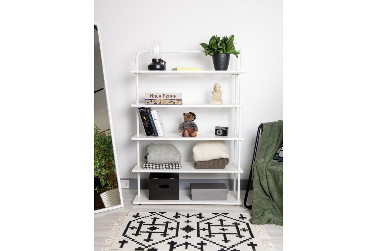 Стеллаж Отрада широкий с 5 полками из ЛДСП, 900х330х1260Н, белый/белый