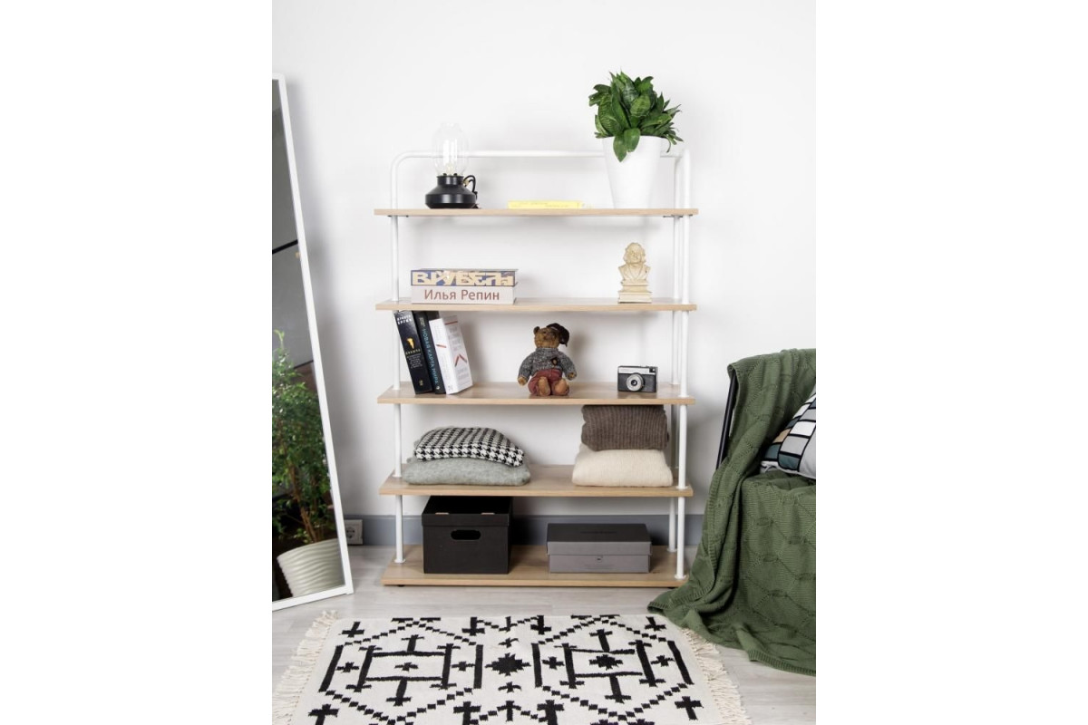 Стеллаж Отрада широкий с 5 полками из ЛДСП, 900х330х1260Н, белый/дуб