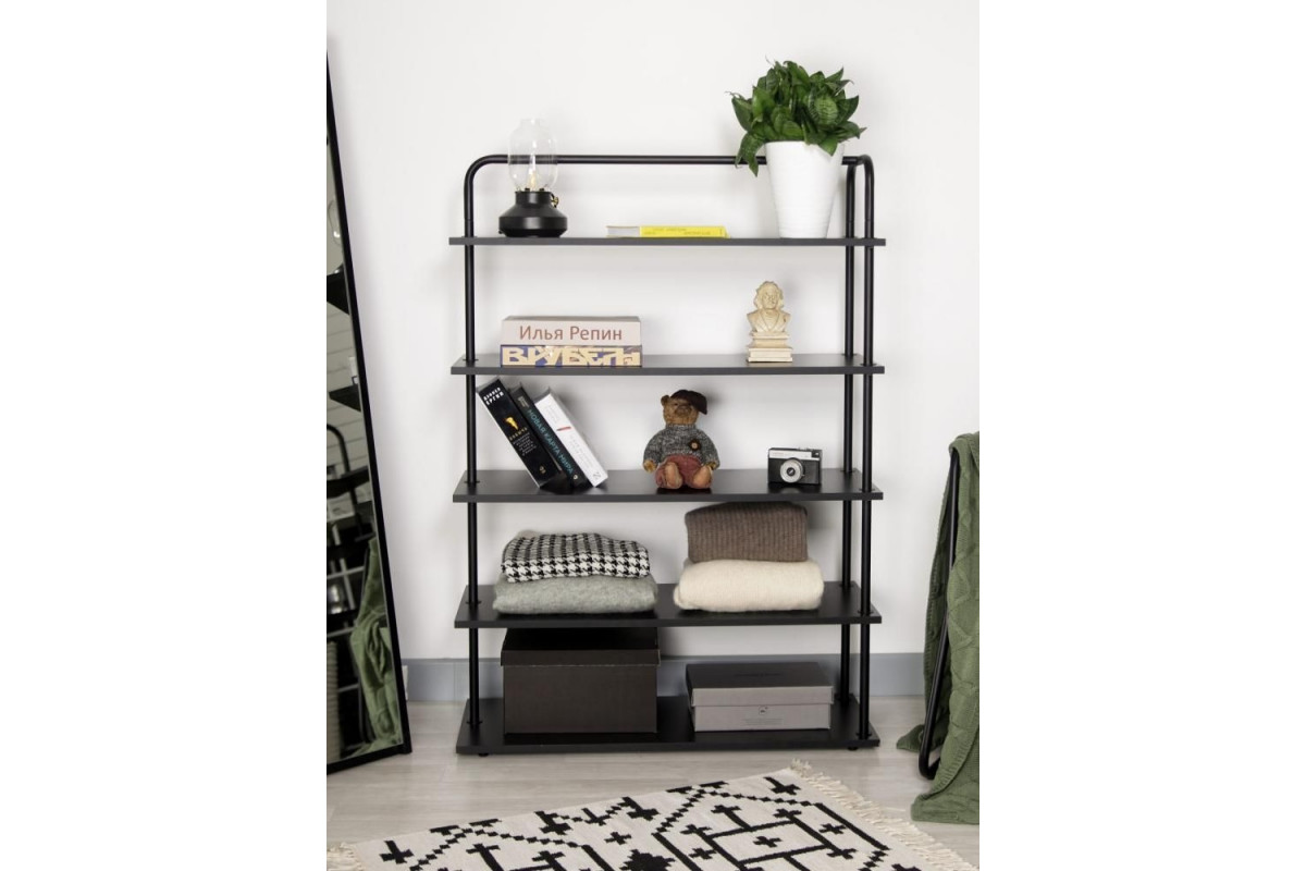 Стеллаж Отрада широкий с 5 полками из ЛДСП, 900х330х1260Н, черный/черный