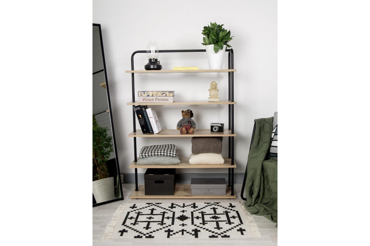 Стеллаж Отрада широкий с 5 полками из ЛДСП, 900х330х1260Н, черный/дуб