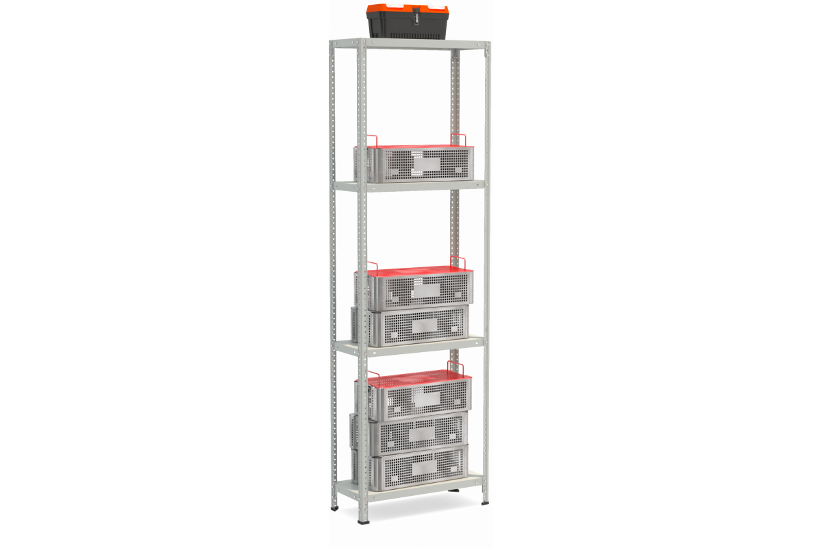• Стойки и полки окрашены полимерной (порошковой) краской RAL 7035 светло-серого цвета.