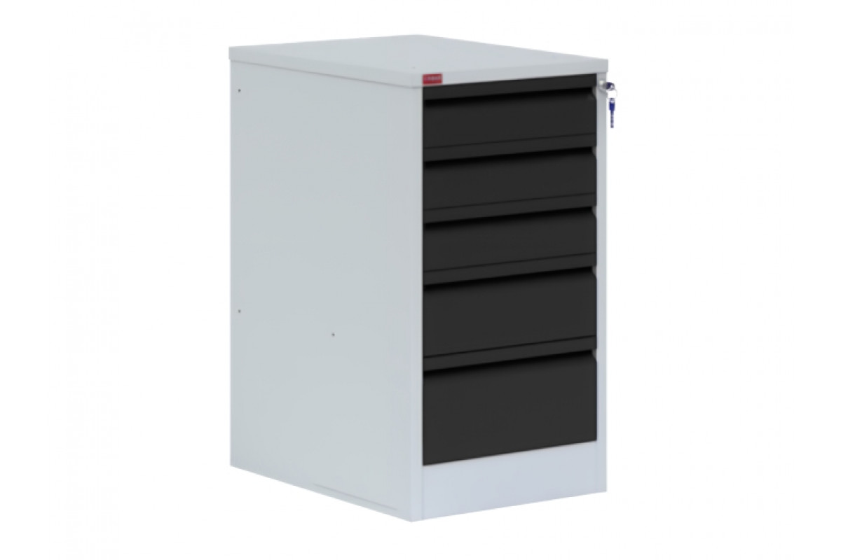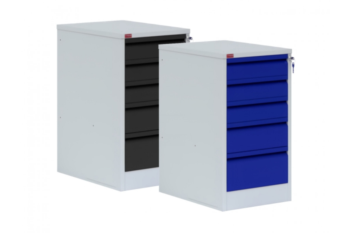 Тумба для металлического верстака может использоваться как с верстаком, так и как отдельный элемент металлического мебели. Состоит из 5-ти выдвижных ящиков на телескопических направляющих, запирающихся на общий замок. Нагрузка