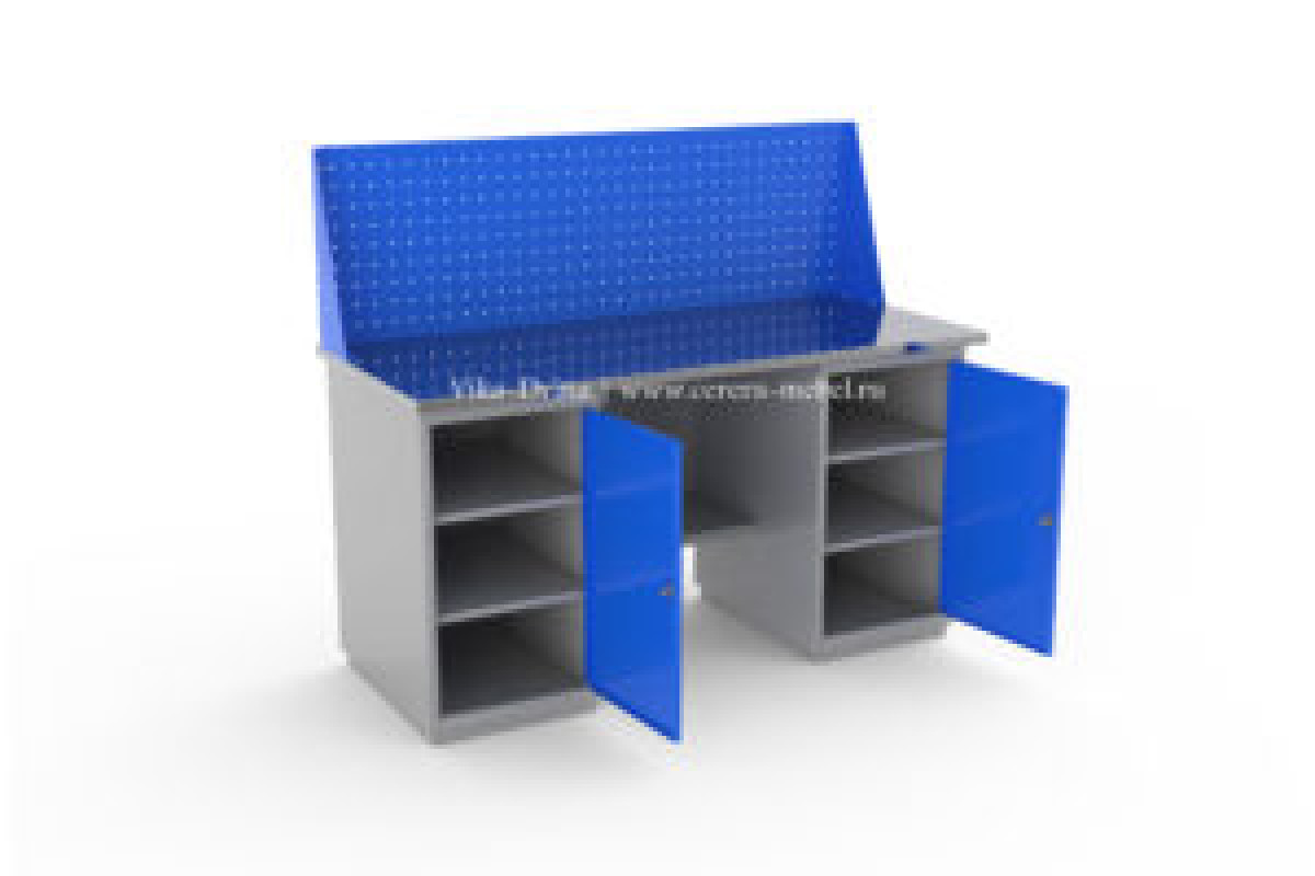 Верстак изготовлен из листовой холоднокатаной стали толщиной не менее 1 мм.