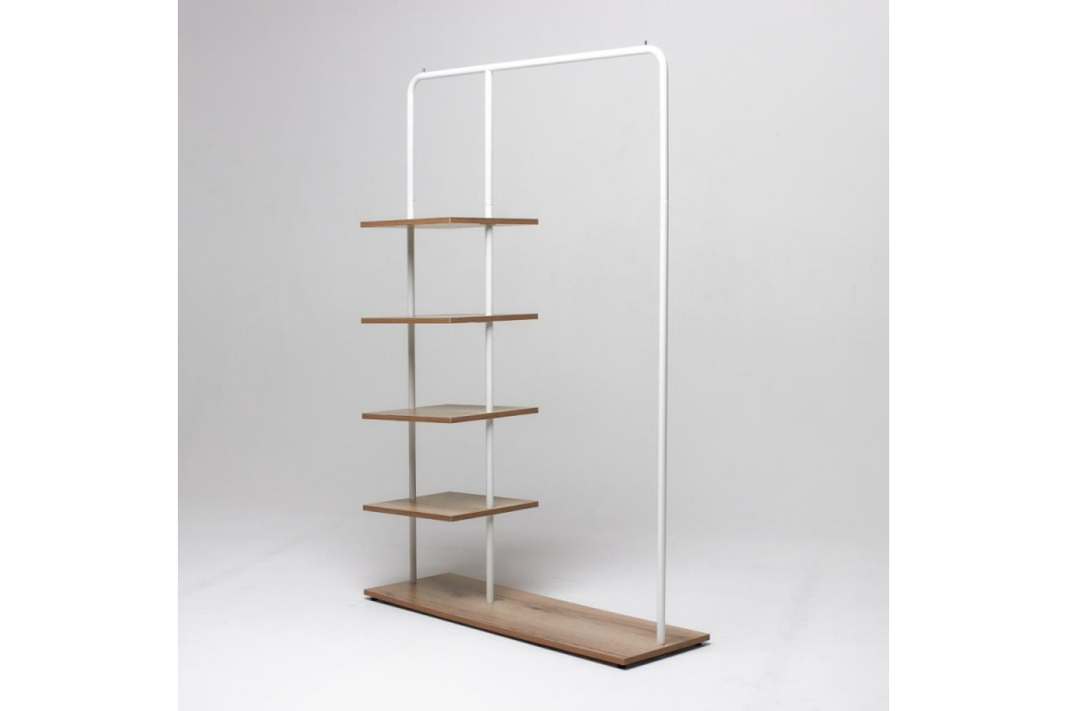 Вешалка напольная Отрада с пятью полками для одежды и обуви из ЛДСП, 1000х330х1500Н, серая/дуб