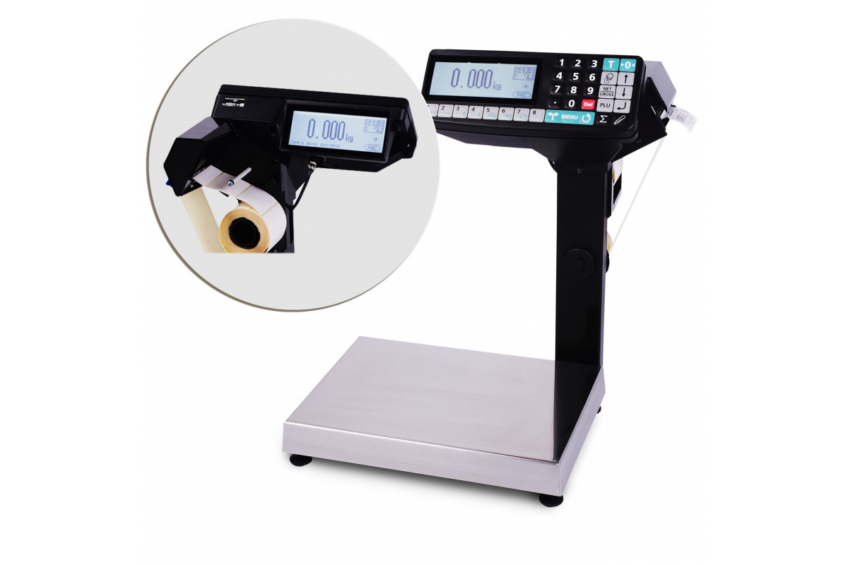 Весы с устройством подмотки конца ленты предназначены для маркировки и учета весовых, штучных и счетных товаров за прилавком. Весы печатают как простые этикетки с автоматически настраиваемым форматом, так и этикетки любой сложности. Весы поддерживают печать 10 форматов штрихкодов (EAN13…EAN128, GS1 DataBar Expanded Stacked, DataMatrix). Память на 20 000 товаров. Регистрируют товароучетные операции (продажа, прием, отпуск, списание, инвентаризация). Легко интегрируются в системы учета, в том числе в режиме весового терминала сбора данных. Обеспечена возможность подключения к весам сканера штрихкодов и выносного промышленного индикатора. Обмен информацией с внешними устройствами реализован по интерфейсам Ethernet и RS-232, а также с помощью USB-flash накопителя.