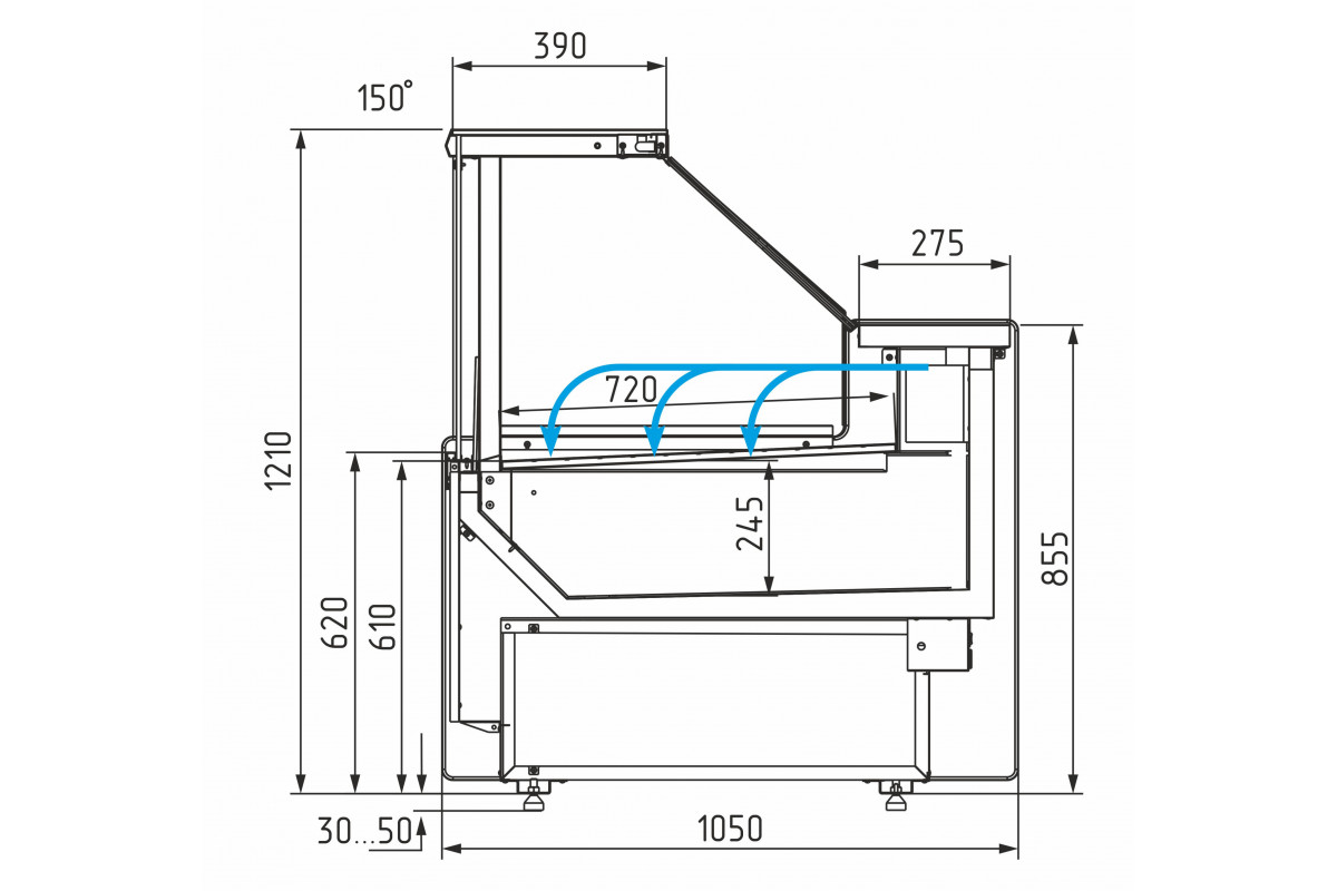 Отдельностоящие витрины приобретаются только вместе с боковинами. При заказе нескольких витрин с одинаковым температурным режимом для установки в линию достаточно заказать 2 боковины на всю линию.