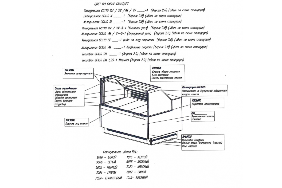- Витрина холодильная Carboma GC110 SM 1,5-1 (версия 2.0) без боковин, цвет по схеме стандарт.