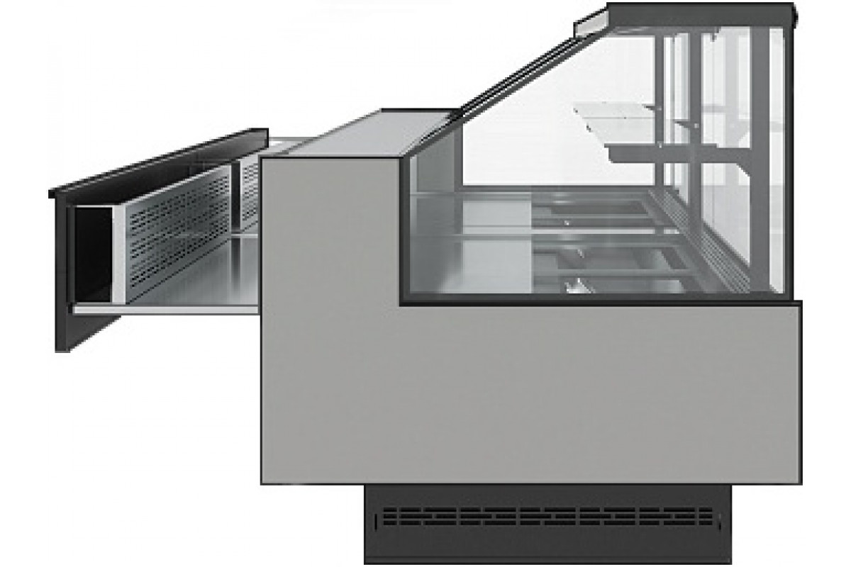 - Экспозиционная поверхность и столешница изготовлены из шлифованной нержавеющей стали;