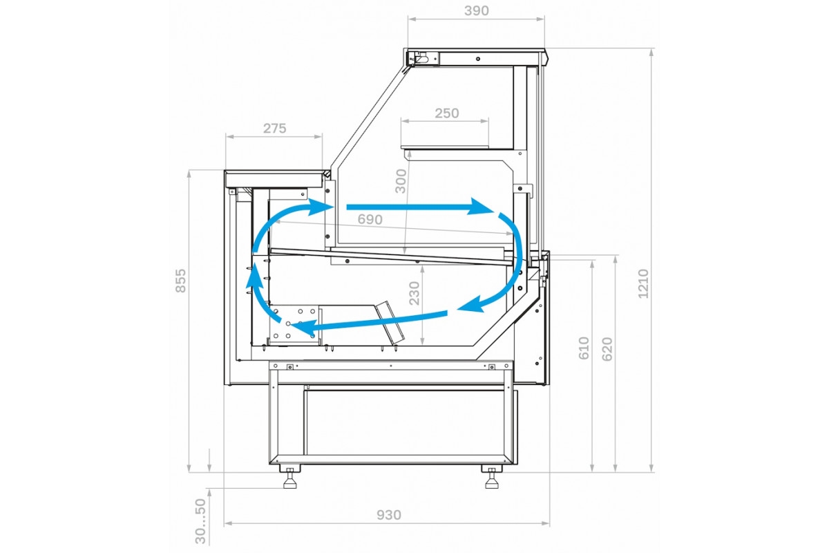 Витрина холодильная Carboma GC95 VM 0,94-1 (версия 2.0) с боковинами, 9006-9005 - оборудование из серии PALM 3, предназначенное для охлаждения, кратковременного хранения и демонстрации разнообразных продуктов и готовых блюд. Оснащена динамической системой охлаждения. Рекомендуется к применению в магазинах, супермаркетах и на других предприятиях общественного питания и торговли.