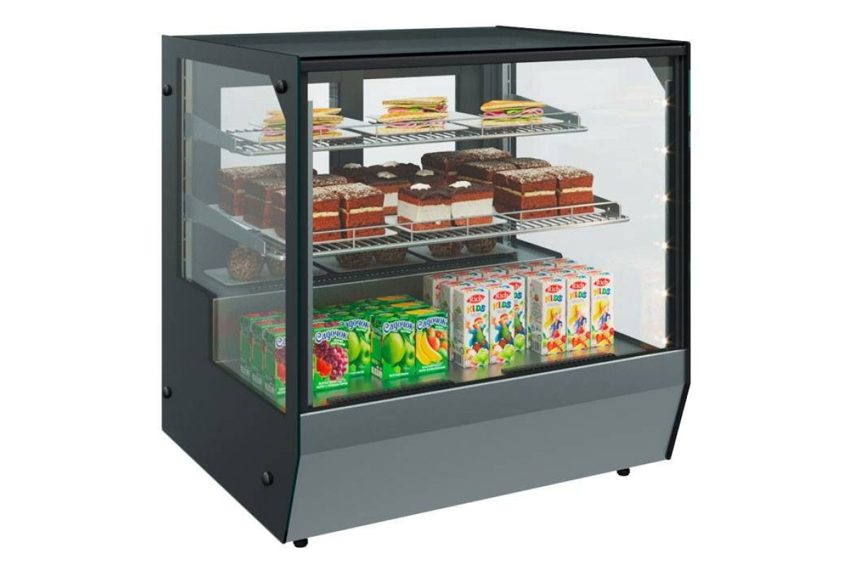 Витрина холодильная настольная Carboma AC59 VV 0,9-1 (0430) компактная, мобильная витрина идеальна для небольших кафе, баров с большой проходимостью, когда требуется снизить нагрузку обслуживающего персонала. Витрина оснащена раздвижными створками-слайдерами со стороны продавца. Современный, стильный кубический дизайн. Стабильный температурный режим, благодаря динамическому охлаждению и наличию стеклопакетов.