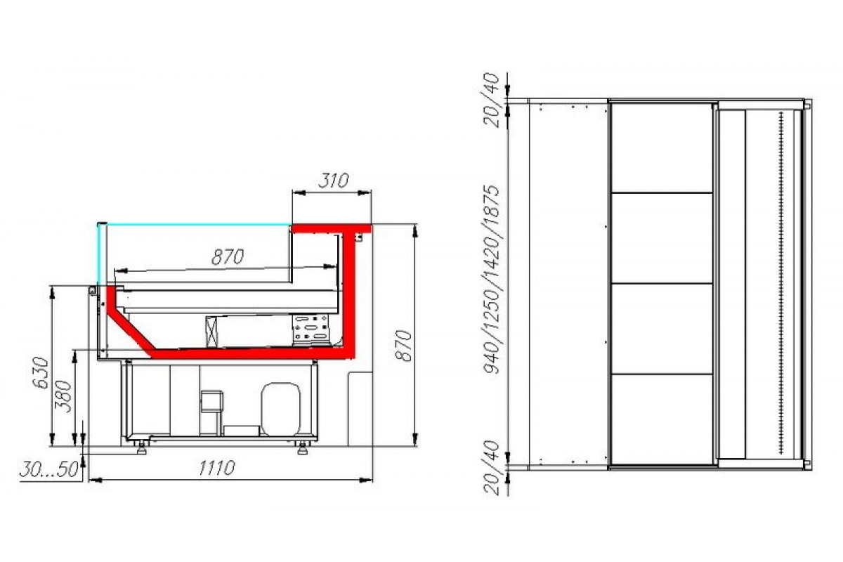 - Глубина выкладки 870 мм;