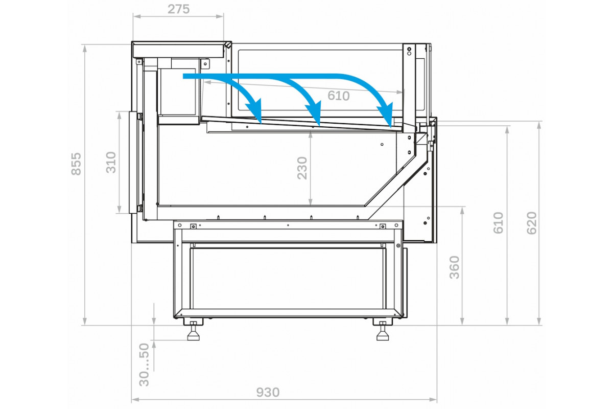 Модель без боковин предназначена для установки нескольких витрин в линию и не может использоваться как отдельностоящая. При заказе нескольких моделей для установки в линию достаточно приобрести две боковины для первой и последней витрины.