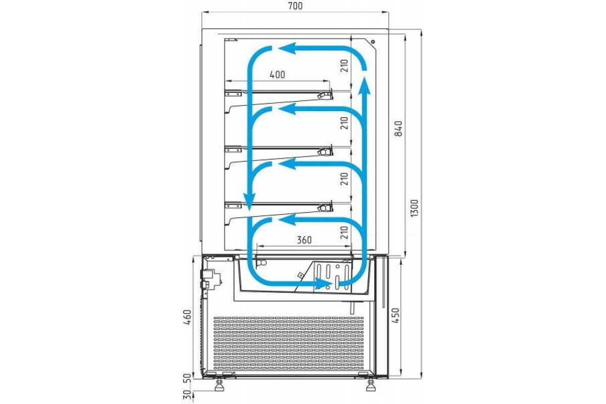 Витрина кондитерская Carboma KC71-130 VV 1,2-2 (открытая 9005) представляет собой кондитерскую витрину открытого типа. Используется на предприятиях общественного питания и торговли для демонстрации, охлаждения и кратковременного хранения напитков, тортов, пирожных и других кондитерских изделий и гастрономических товаров. В конструкции предусмотрено 3 полки из металла, оснащенные ценникодержателем. Опорные ножки регулируются по высоте. Корпус произведен из пластика и стали. Для повышения теплоизоляционных свойств применяется слой из пенополиуретана.
