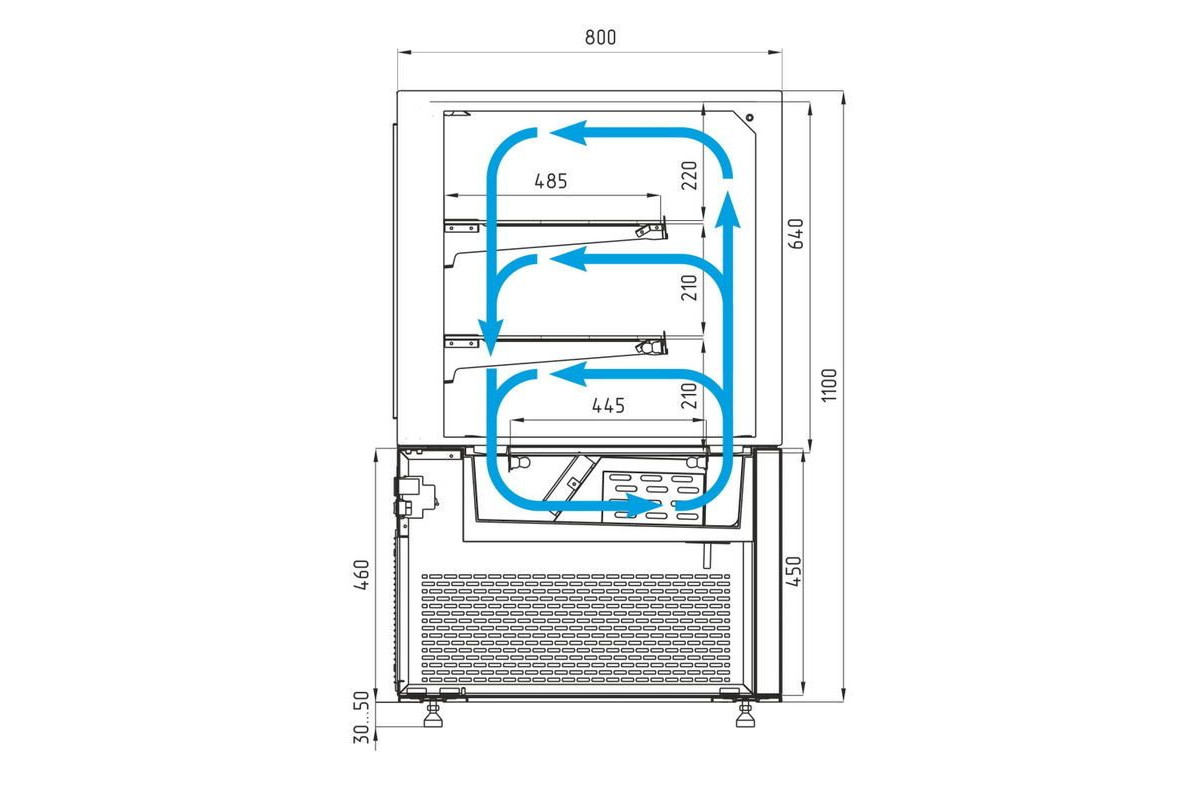 - глубина выкладки – 44,5 см + 2 полки по 48,5 см,