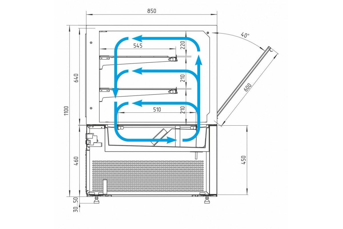 - глубина выкладки – 51 см + 2 полки по 54,5 см;