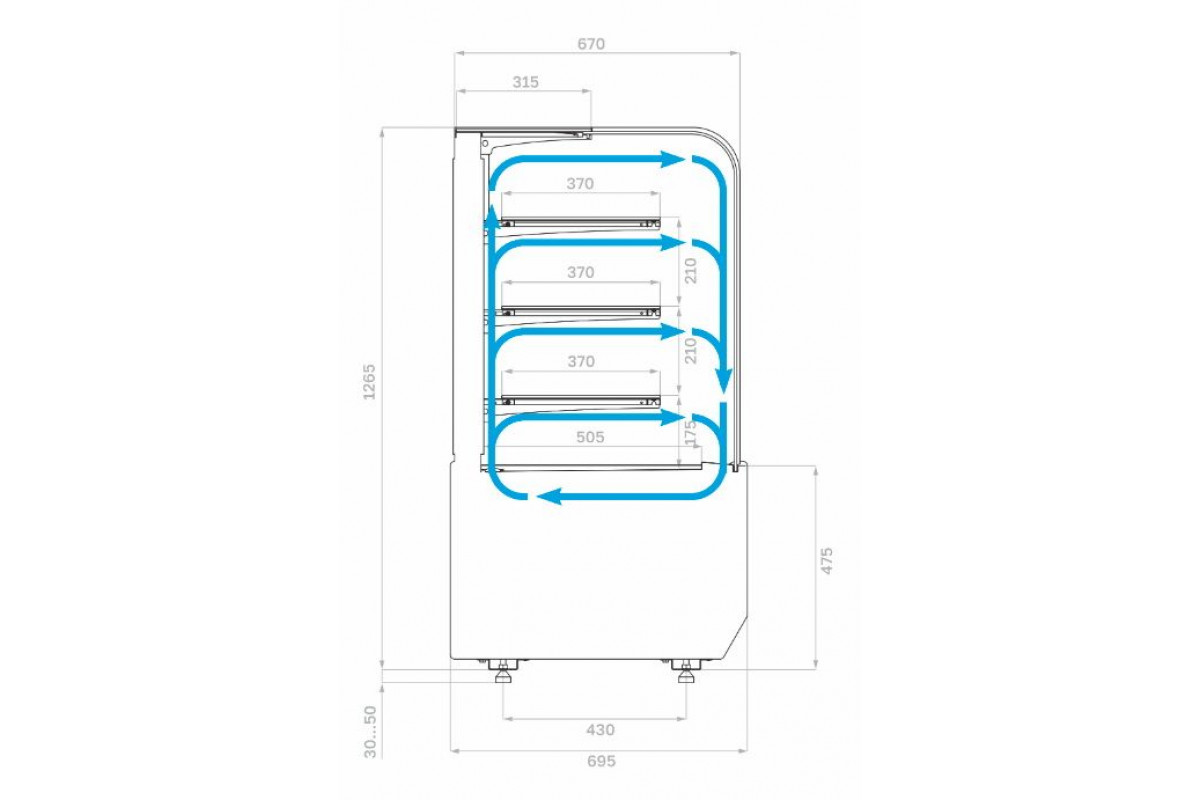 - Глубина выкладки 50,5 см + 3 полки по 37 см;