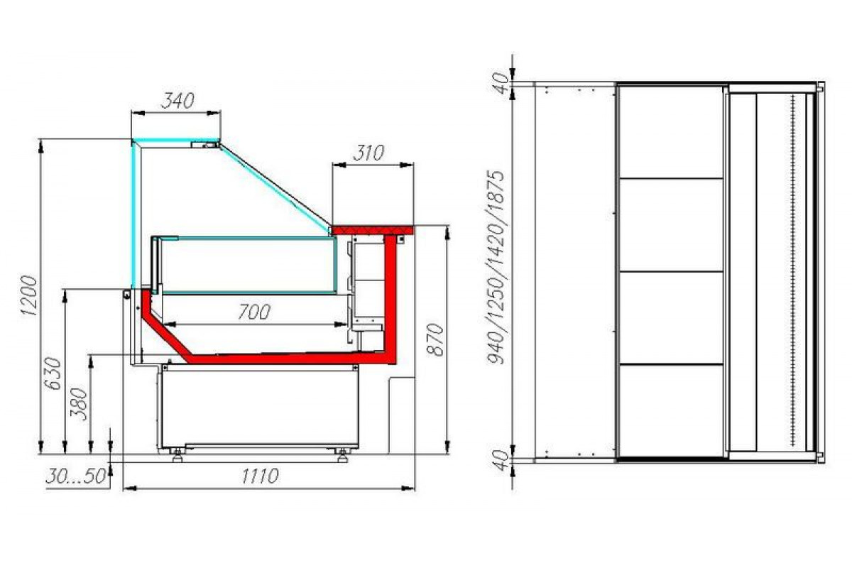 - витрина предназначена для эксплуатации в закрытом помещении с естественной вентиляцией при температуре окружающей среды от +12 до +25 и относительной влажности не более 60%.